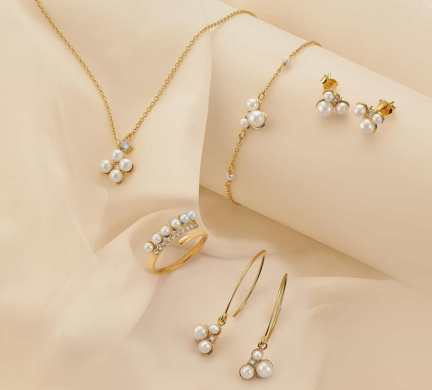 Elegante Ohrringe aus feinem 925 Sterlingsilber, wahlweise mit Echtgold vergoldet. Besetzt mit 3 Perlen und einem Zirkoniastein.