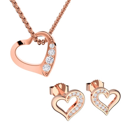 Die dazu passenden Ohrstecker setzen das perfekte i-Tüpfelchen auf Ihr Brautensemble. Jeder Ohrring trägt weitere acht Zirkoniasteine, welche die Herzform betonen. Die kunstvoll gestalteten Ohrstecker fangen das Licht ein und verleihen Ihrem Gesicht einen strahlenden Glanz.