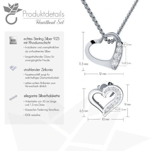 Das Herzstück dieses Sets ist die atemberaubende 925er Silberkette mit einem Herzanhänger, der mit vier weißen Zirkonia Steinen geschmückt ist. Das Set erstrahlt in einem faszinierenden Glanz, der die Schönheit der Braut unterstreicht. Die filigrane Silberkette sorgt für eine harmonische Verbindung und betont die Eleganz dieses Schmuckstücks.