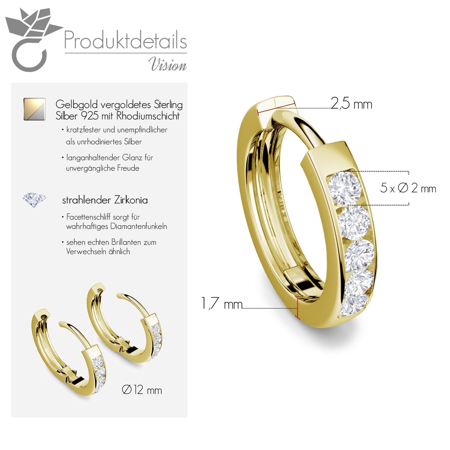 Die brillant funkelnden Damenohrringe mit 10 traumhaft glitzernden Zirkonia Steinen sind absolute Klassiker. Die Creolen sind hergestellt aus 925 Sterling Silber (rhodiniert oder vergoldet mit Anlaufschutz) mit einem Klapp-Verschluss. Die Ohrringe sind 100% nickelfrei (ohne Nickel).