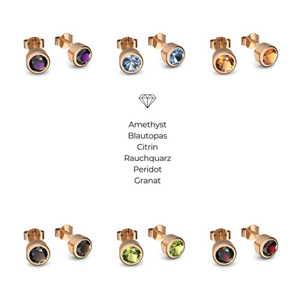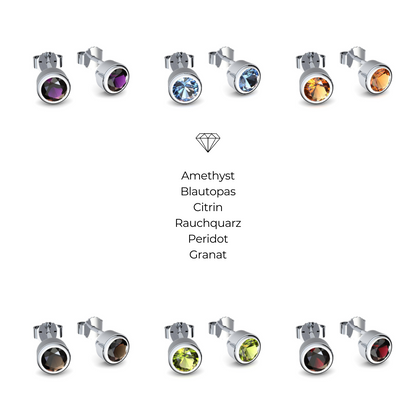 Das Design der Ohrringe ist zeitlos & modern. Gestalten Sie Ihr Modell in Ihrer Wunschlegierung mit passendem Edelstein & lassen Sie das Etui mit einer Gravur versehen. Wählen Sie aus folgenden Legierungen: Sterlingsilber 925 oder Silber Gelbgold/Rosegold vergoldet, zudem können Sie Ihre Ohrstecker mit folgenden Edelsteinen besetzen: Amethyst, Blautopas,Granat, Rauchquarz, Peridot & Citrin.