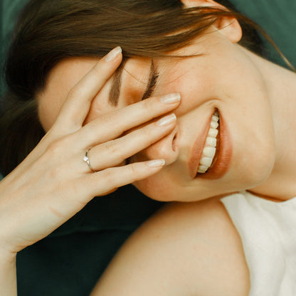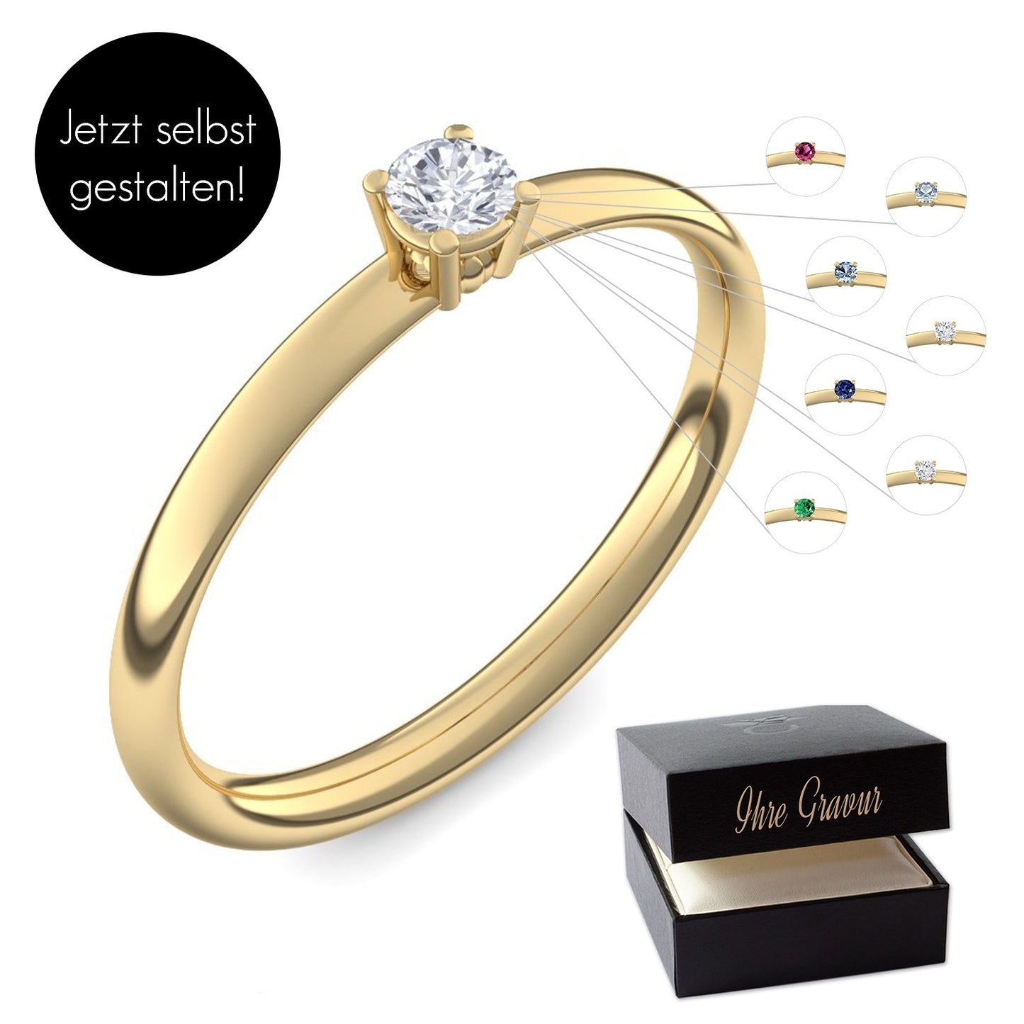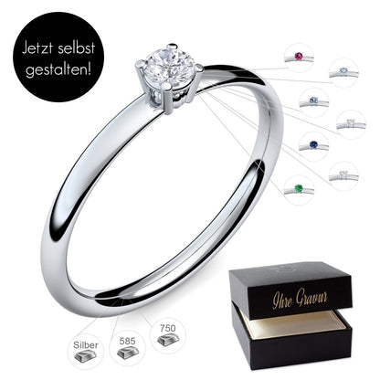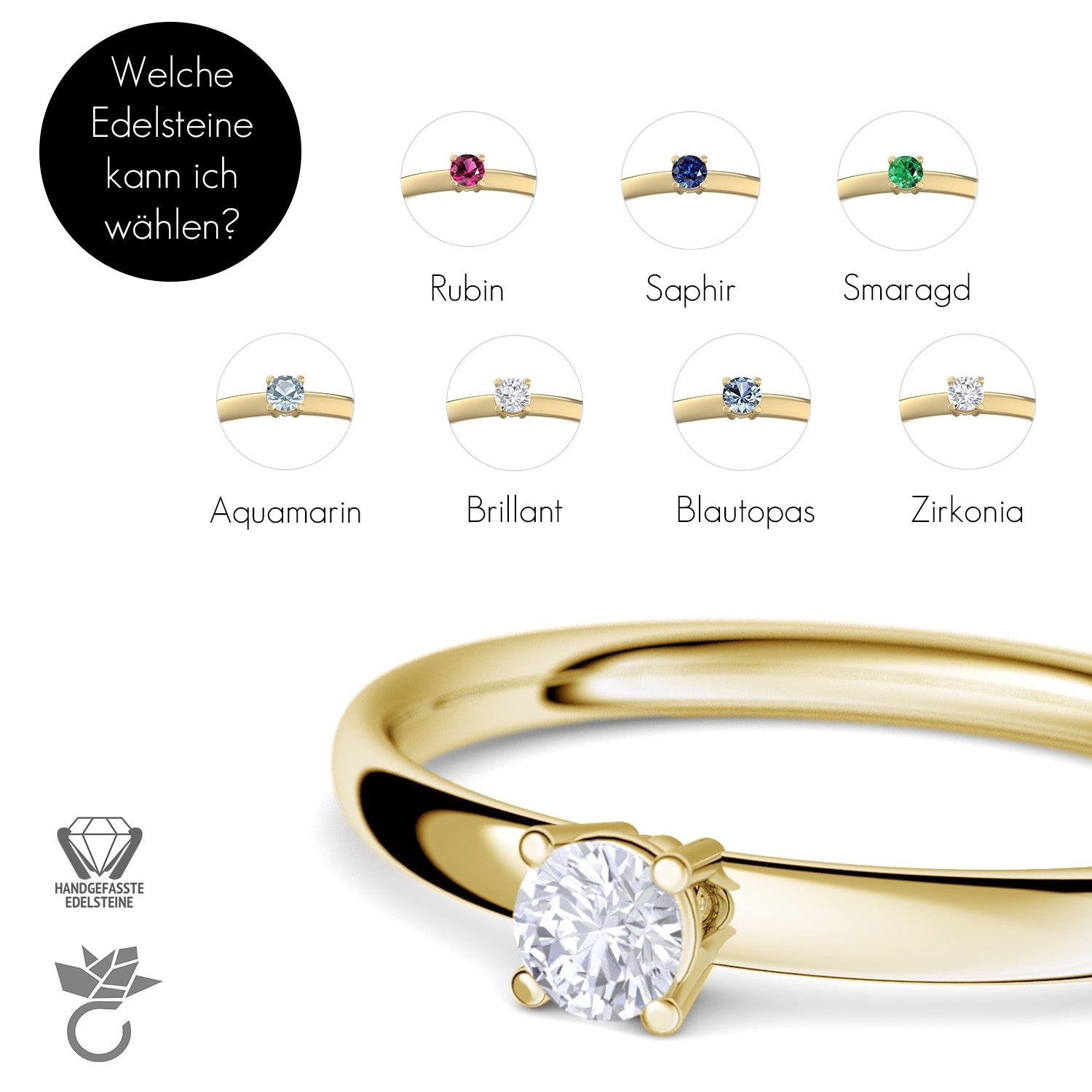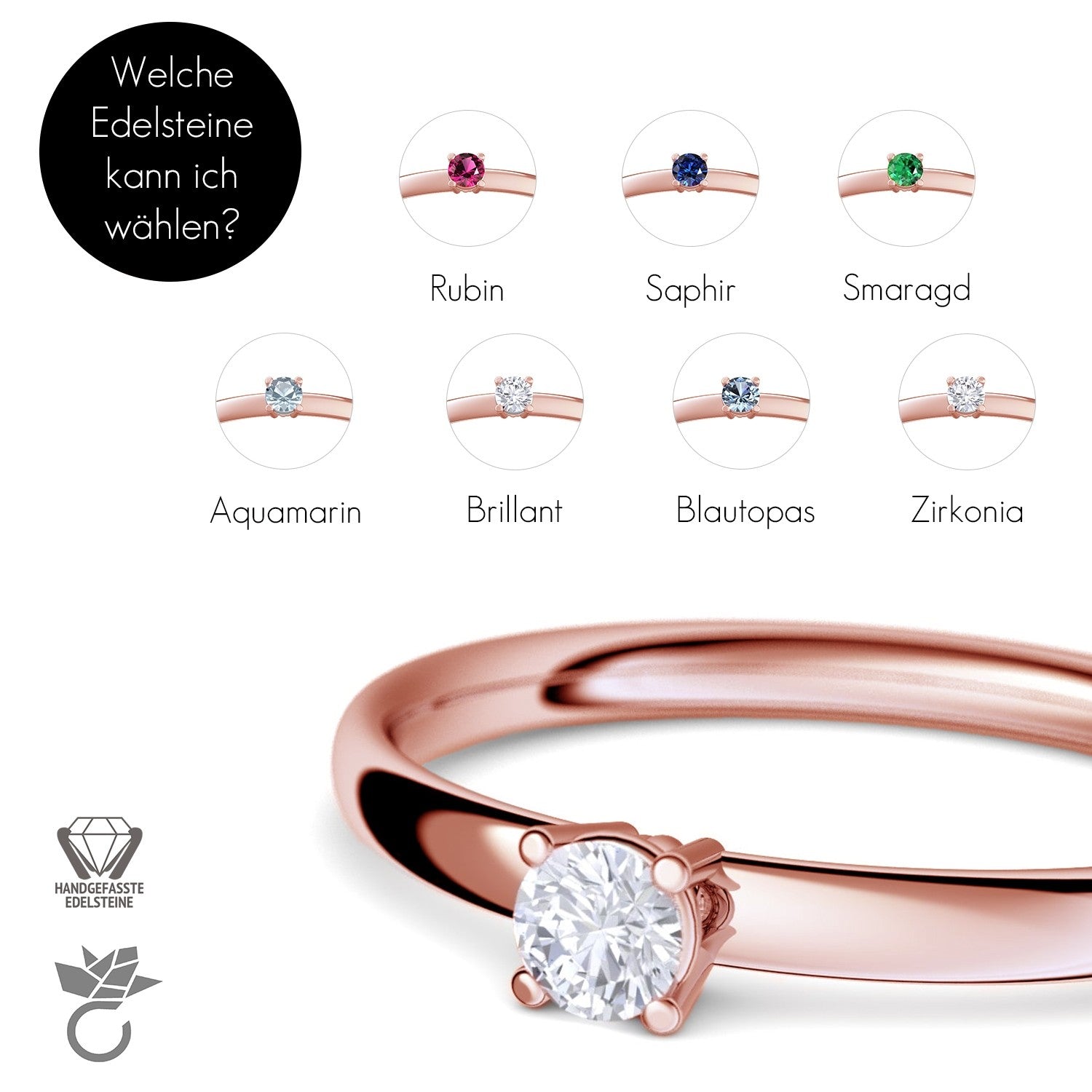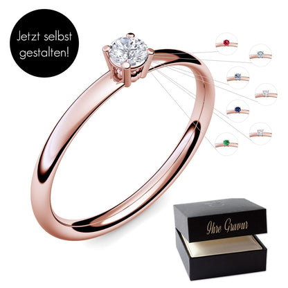 Der Verlobungsring ”Concinnity" ist ein zarter Solitärring. Ein sehr beliebtes Modell unter den schlichten und zierlichen Ringen. Das Design des Rings ist filigran & elegant. Gestalten Sie Ihr rosevergoldetes Silber-Modell in Ihrem Lieblings-Edelstein & lassen Sie das Etui mit einer Gravur versehen. Wählen Sie ausfolgenden Edelsteinen: Zirkonia, Diamant, Aquamarin, Blautopas, Saphir, Smaragd & Rubin.