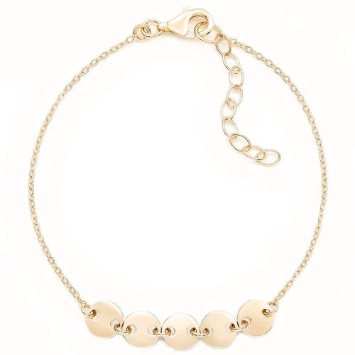 Das elegante Silberarmband zieren in der Mitte fünf runde Plättchen und verleihen ihm so ein außergewöhnliches Aussehen.