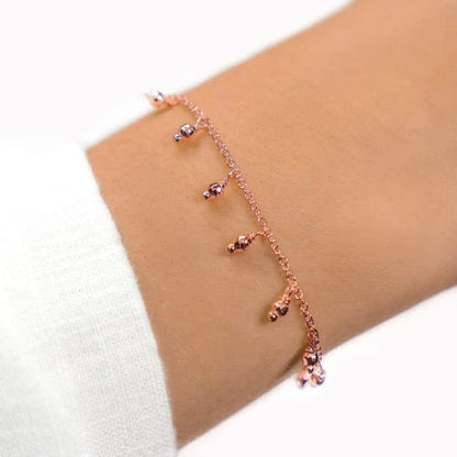 Die kleinen facettierten Kugeln baumeln an der Armbandkette und geben dem Armband Verspieltheit und Leichtigkeit. Die kleinen Anhänger funkeln aufgrund ihres Schliffes sehr schön.