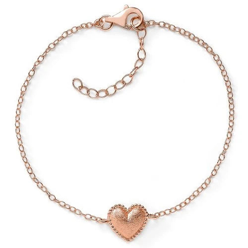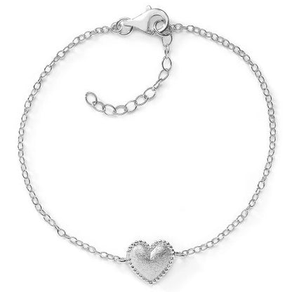 Das Herz-Armband hat ein elegant geschwungenes Herz, welches von einer Reihe kleiner Kugeln umgegeben ist.