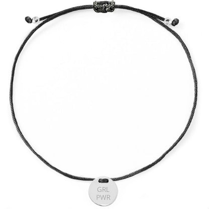 Filigranes Stoffarmband mit schlichtem Anhänger und der Gravur "GRL PWR" - Ein Must-Have für Dich und Deine Mädels! Die Rückseite kann beispielsweise mit den Initialen eurer Clique graviert werden! Hier könnt ihr auch folgende Sonderzeichen integrieren: ♥ (Herz), # (Hashtag), ∞ (Infinity)