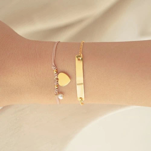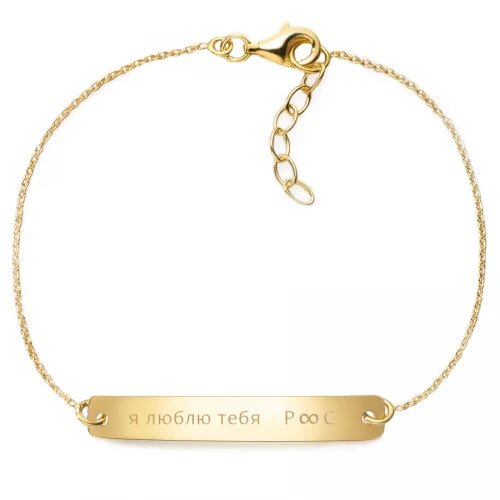 Filigranes Armband mit einer Gravurplatte, die du individuell in kyrillischen Schriftzeichen gravieren kannst!