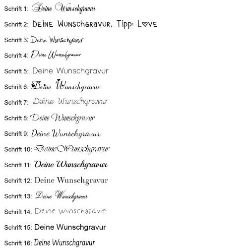 Die Gravur kann auch folgende Sonderzeichen umfassen: ♥ (Herz), # (Hashtag), ∞ (Infinity)