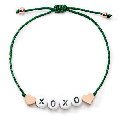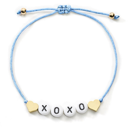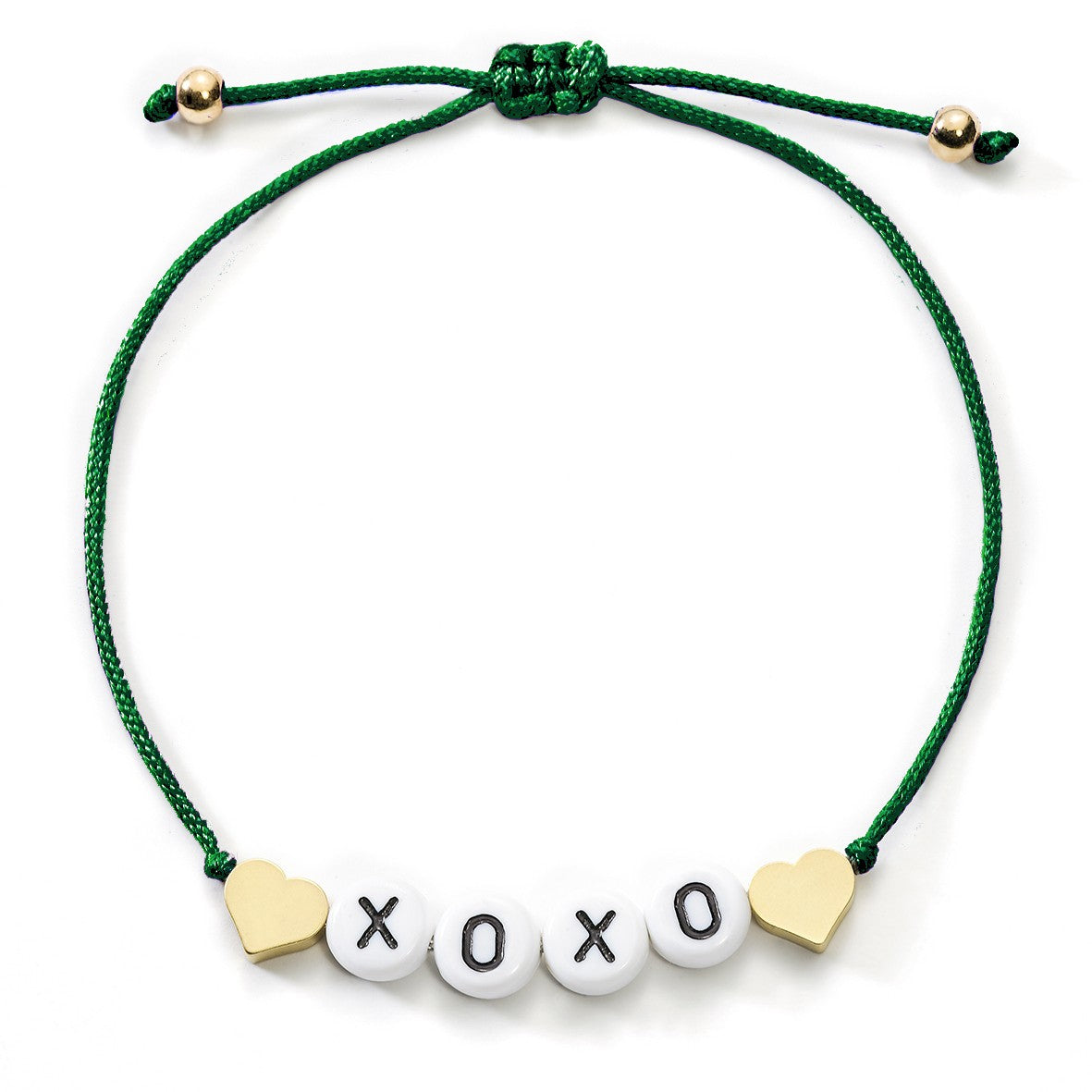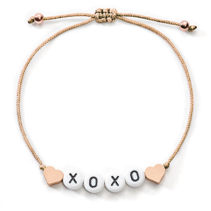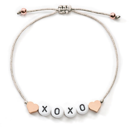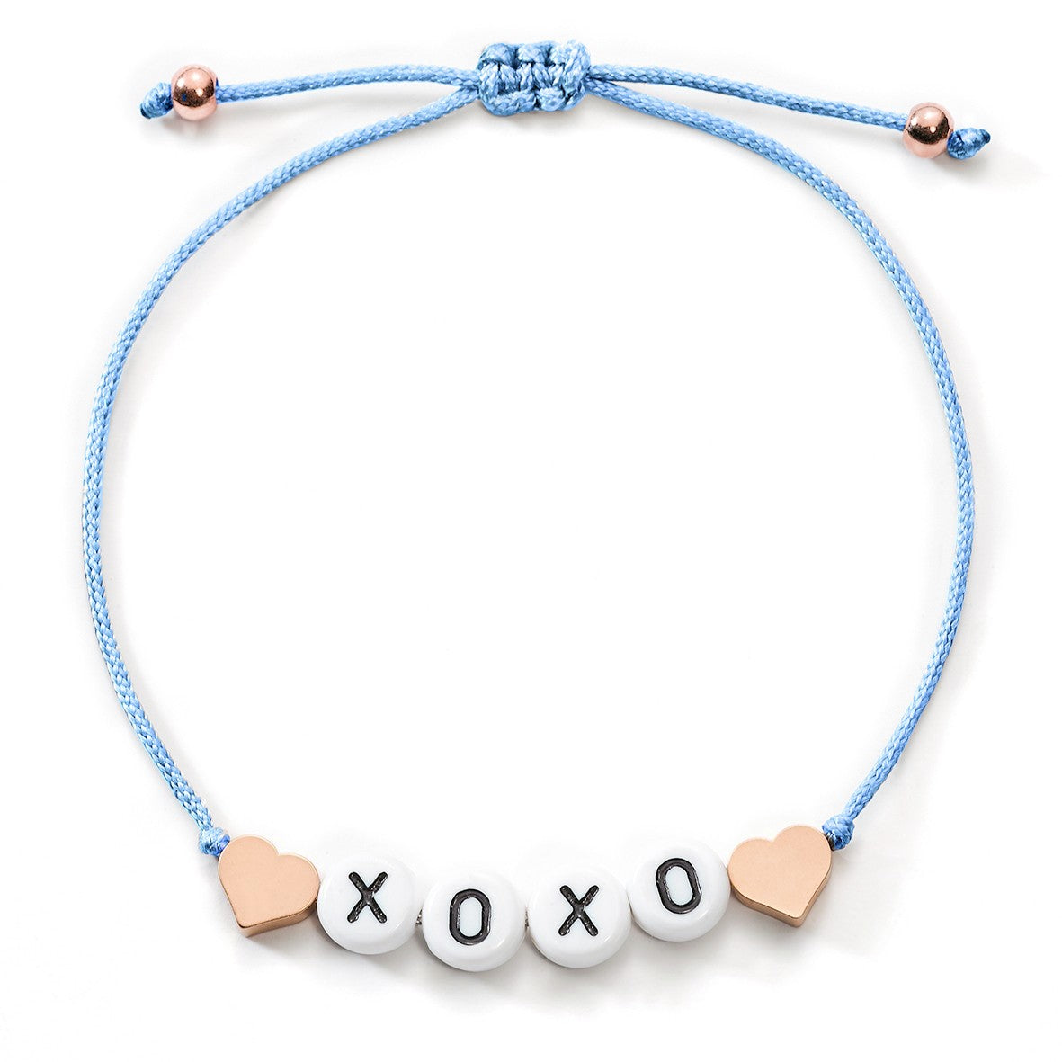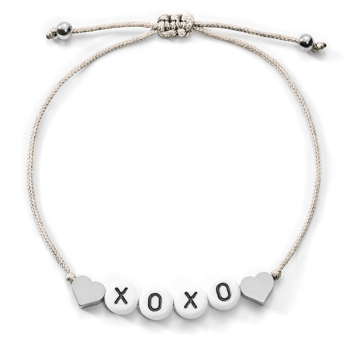 XOXO - Kisses and Hugs gibt es mit diesem stylishen Stoff-Armband bestimmt von allen Seiten! Das Stoffbändchen ist verziert mit kleinen gravierbaren Herzen. So kannst du ein ganz persönliches Armband kreieren, was dich durch den Tag begleitet.