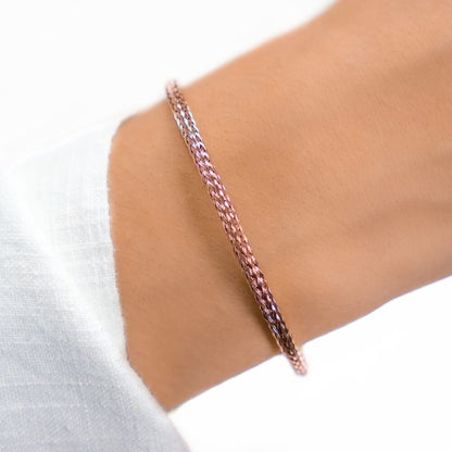 Das runde Geflecht-Design macht das Armband flexibel, sodass Du die Öffnung einfach erweitern und gleichzeitig die Form beibehalten kannst.