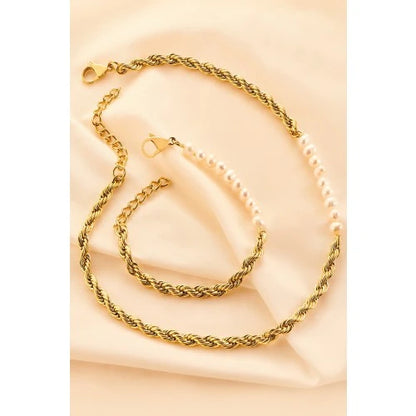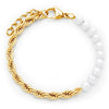 Peppe Deinen Look auf mit unserer Choker-Kette aus Edelstahl. Unsere hochwertig vergoldete Kordelkette verfügt über neun weiße, 7mm-breite Perlen, die für ein klassisches, elegantes Gefühl sorgen. Perlenketten sind seit Jahrhunderten eine wunderbare Möglichkeit, schicke Outfits zu verschönern und mit diesem Choker trägst Du ein modernes und zugleich klassisches Schmuckstück, welches zu fast jedem Outfit passt.