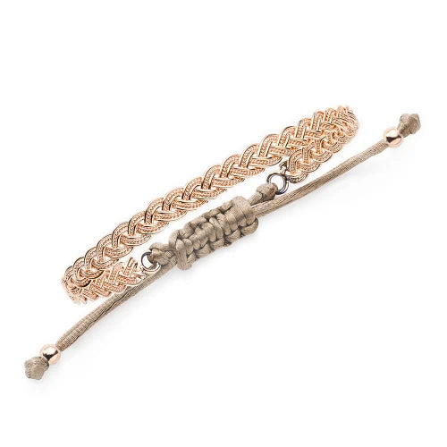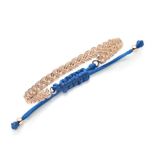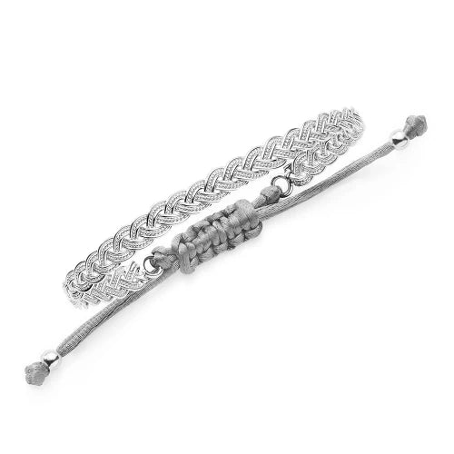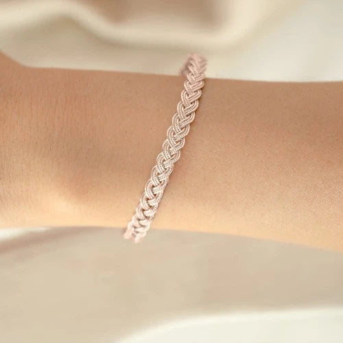Unser Armband Summer Breeze ist ein Muss für jede Fashionista. Im Mittelpunkt steht ein Armreif aus 925 Sterlingsilber mit einem zauberhaften Flechtmuster. Dieser wird durch ein Seidenarmband zu einem funkelnden Accessoires. Das Armband lässt sich durch einen Schiebeknoten in der Größe verstellen.