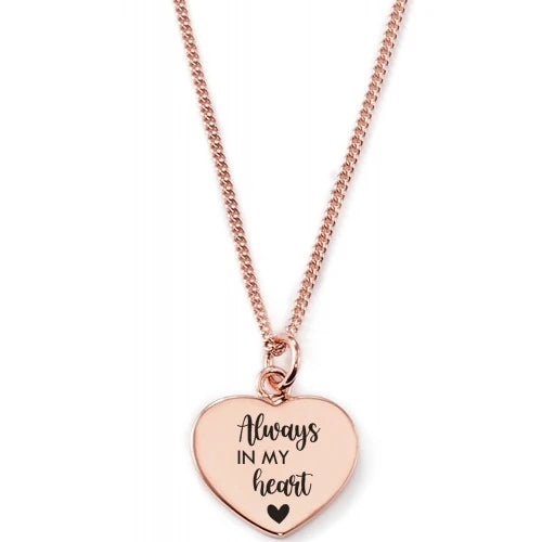 Bitte beachte, dass auf der Vorderseite "Always in my heart" graviert ist. Die Rückseite kann mit einem individuellen Text versehen werden.