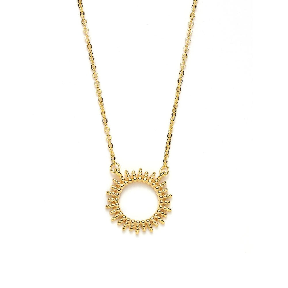 Unsere Halskette Mitternachtssonne mit einem Sonnen-Anhänger eignet sich für alle, die eine filigrane Version der gerade im Trend liegenden Sonnenschmuck haben möchte.