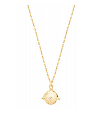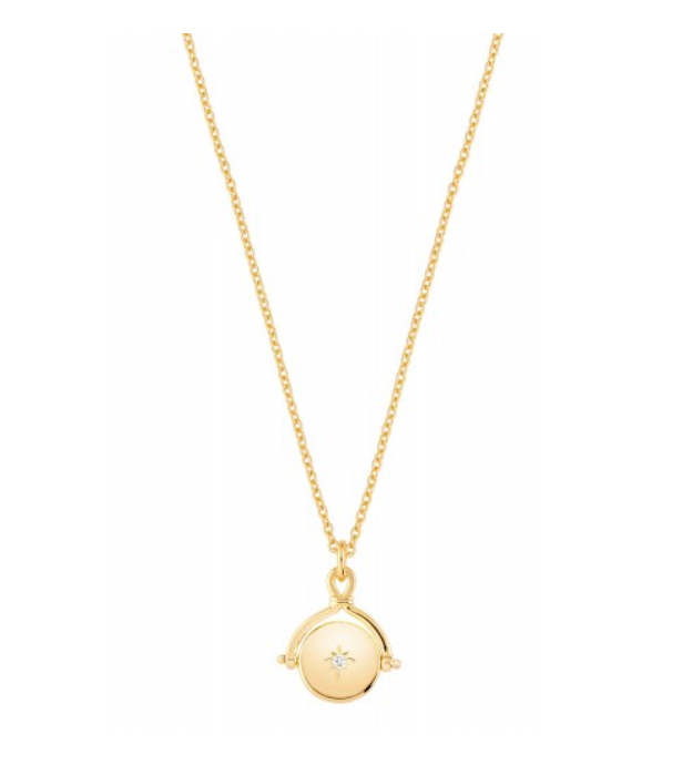 Detailreich verarbeitete Halskette - das runde Plättchen kann auf der Rückseite graviert werden und auf der Vorderseite ist ein Zirkoniastein eingefasst. Die runde Platte ist drehbar, sodass man Vorder- und Rückseite nach belieben bestimmen kann.