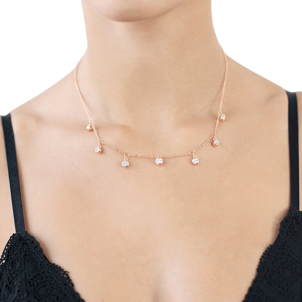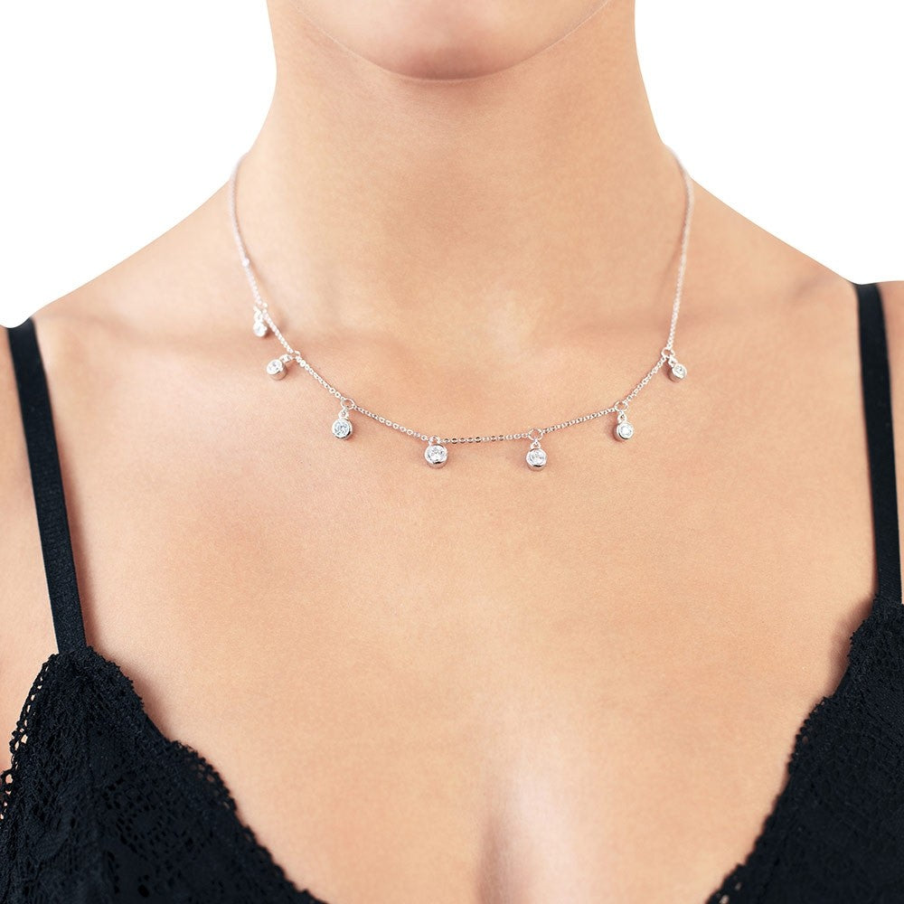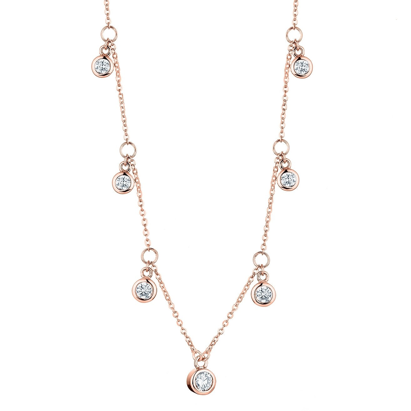 An unserer Halskette "Seven Zirkonia" befindet sich 7 Zirkoniasteinanhänger, die der Kette das gewisse Etwas verleihen.