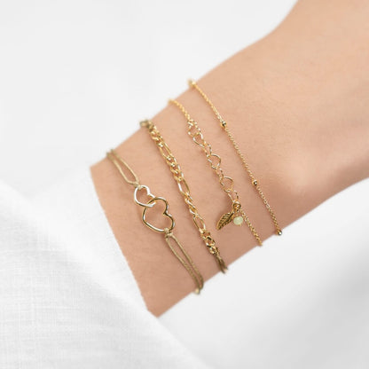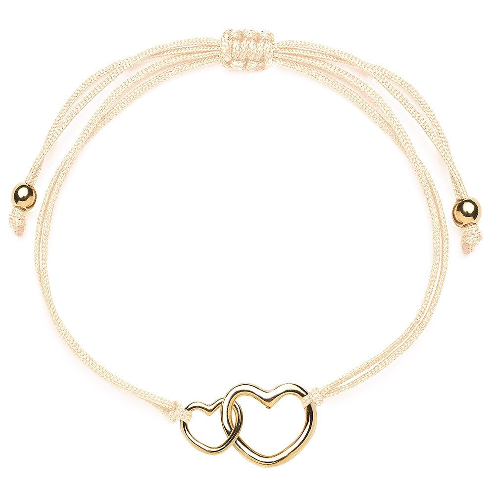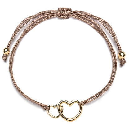Das Herz-Armband Double Feeling ist ein feines, alltagstaugliches Schmuckstück, welches in verschiedenen Farben und Materialien erhältlich ist. Das Design basiert auf einem einfachen Prinzip: Konzeption von schönem besonderem und sofort tragbarem Schmuck. Dieses Armband enthält zwei ineinander greifende Herzen und einen Makramee-Verschluss, wodurch Du das Armband leicht an Deine Handgelenk-Größe und Styling-Vorlieben anpassen kannst.
