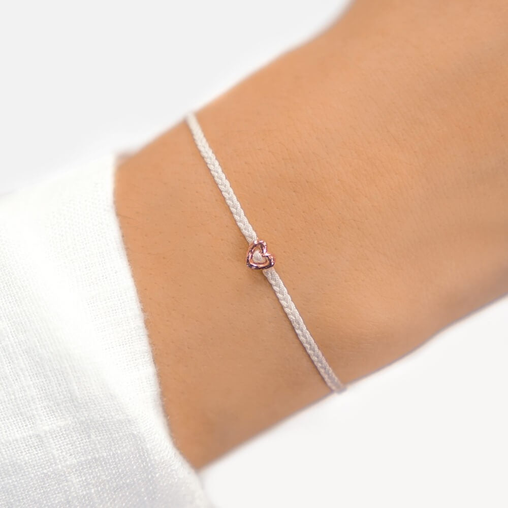 Dieses zarte Herz-Armband lässt jedes Frauenherz höher schlagen. Das Stoffband erstrahlt in einem filigranen Flechdesign und ist in vielen Farben erhältlich - ob klassisch in Schwarz oder auffallend in Weinrot. Abgerundet wird das Armband durch einen kleinen Herzanhänger in hochwertigem 925er Sterlingsilber in der Farbe Gold oder Roségold. Solltest Du Dich für Gold entscheiden handelt es sich hierbeit um eine Vergoldung in 18 karat Rosé - oder 18 karat Gelbgold - das Grundmaterial ist in jedem Fall 925er Sterlingsilber.
