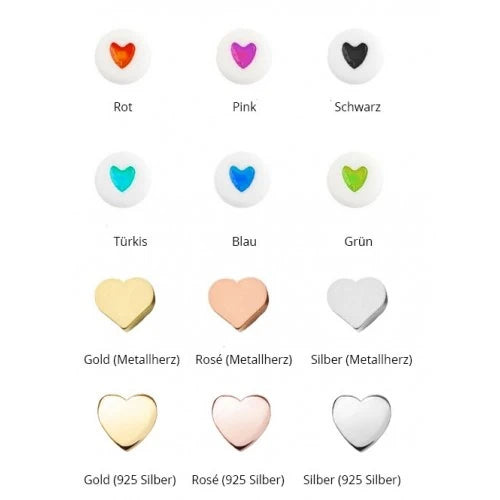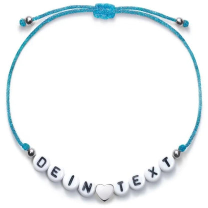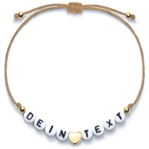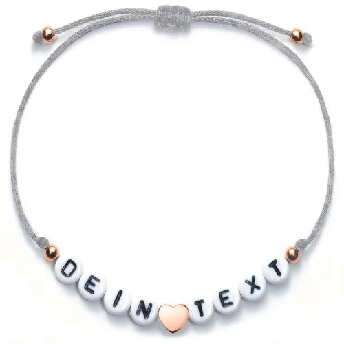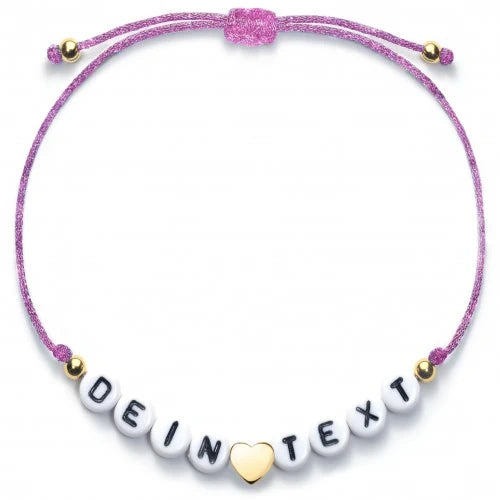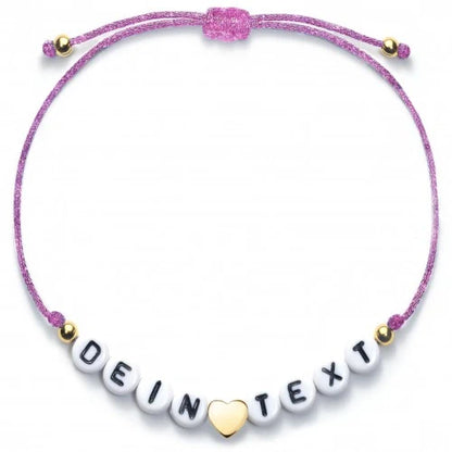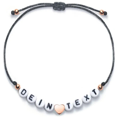 Gestalte dein persönliches Namensarmband im Glamour-Look durch eine individuelle Botschaft! Gib einfach deine Wunschbuchstaben für das Namensarmband an. Solltest du ein Herz wünschen, gib dieses bitte an entsprechender Stelle in deiner Botschaft als Symbol (♥, <3 ) an oder schreibe "Herz" in Klammern: (Herz).