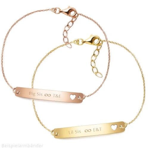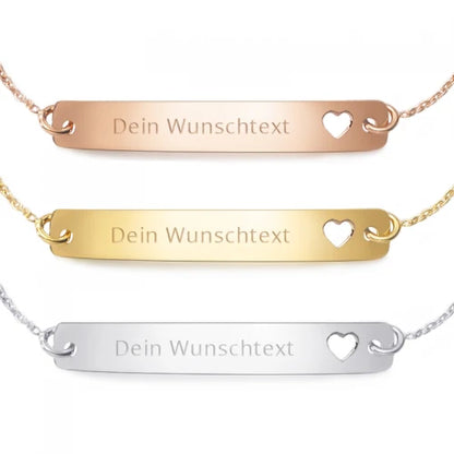 Filigrane Armbänder mit einer Gravurplatte, die du individuell gravieren kannst! Auf der Gravurplatte ist ein ausgestanztes Herz integriert. Das Armband ist aus echtem Sterlingsilber in silber, rosé oder gold erhältlich.