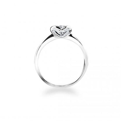 Der aus 925-Sterlingsilber gefertigte Ring "Diamond Heart" ist mit seinem minimalistischen und dennoch glamourösen Design ein besonderes Exemplar, das mit seinen herzförmigen Freiflächen, zwischen denen ein eleganter Zirkoniastein eingebettet ist, überzeugt.