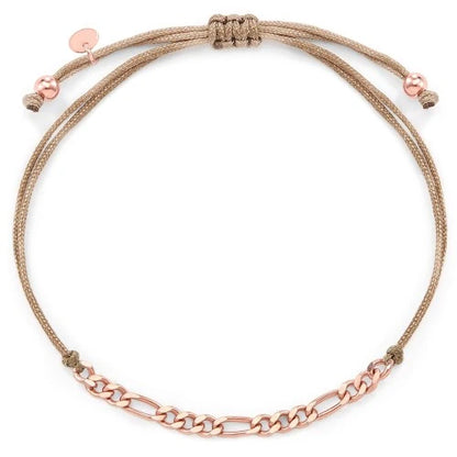 Unser Stoffarmband Figaro ist ein bequemes und elegantes Schmuckstück für jeden Tag, welches jedes Outfit verschönert. Das schöne verstellbare Armband verfügt über eine polierte, filigrane Figaro-Gliederkette aus 925 Sterlingsilber. Dank dem Makramee-Verschluss passt sich das Stoffarmband perfekt an Deinem Handgelenk an.