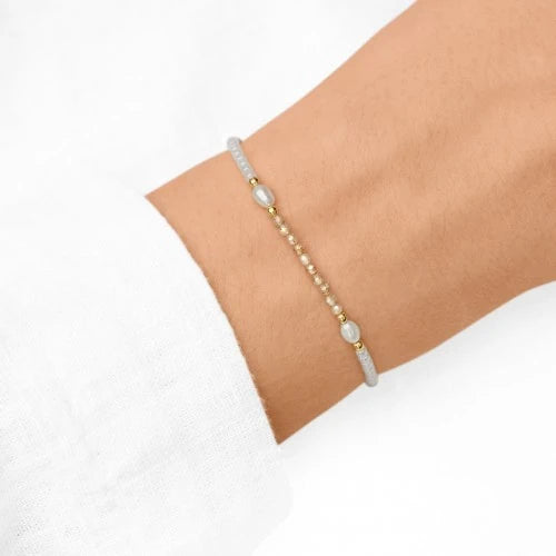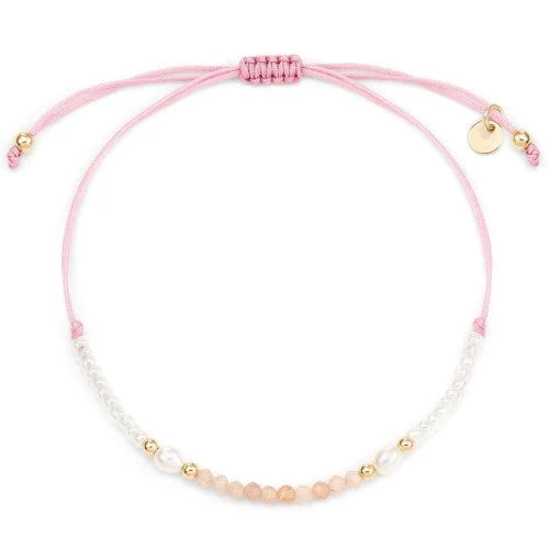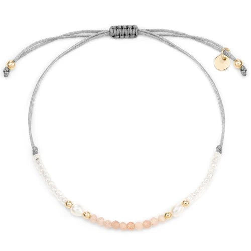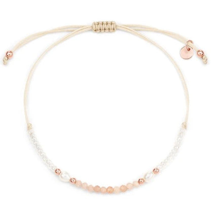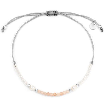 Dieses farbenfrohe Perlenarmband sieht verspielt und frisch aus und passt zu Deinem charmanten Stil. Diese kokette Auswahl ist wunderschön gestaltet und präsentiert eine Reihe leuchtender, runder und ovaler Perlen in glänzendem Weiß, verführerisch gefärbtem Champagner und süß gefärbtem Pfirsich. Zierliche Perlen aus Sterlingsilber glitzern zwischen den farbigen Perlen. Dieses Perlenarmband hat einen verstellbaren Makramee-Verschluss und passt sich damit perfekt Deinem Handgelenk an.