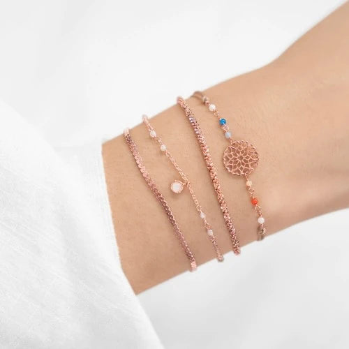 Unser Armband begeistert mit seinem filigranen Design, wodurch er sich als ein Everyday Piece für alle Fälle eignet. Die zarte Kette aus gelbvergoldetem 316L Edelstahl ist kombiniert mit kleinen rosa Perlen und einer rostrosen Puschel, die als eine aufregende Highlight dieses Armband gilt. Das Mix aus Glamour und Verspieltheit macht dieses Armband zu einem Must-Have.