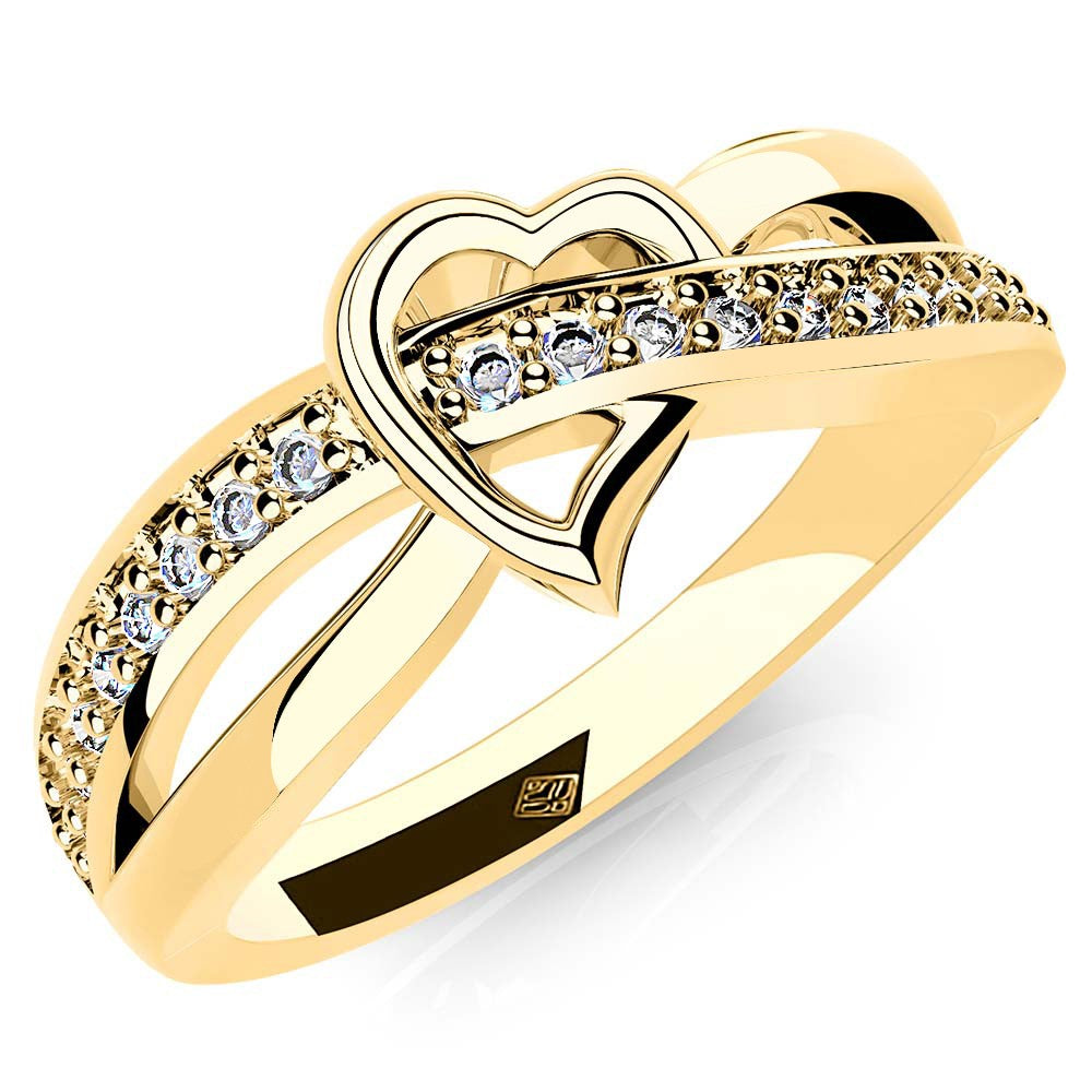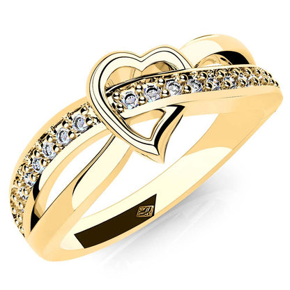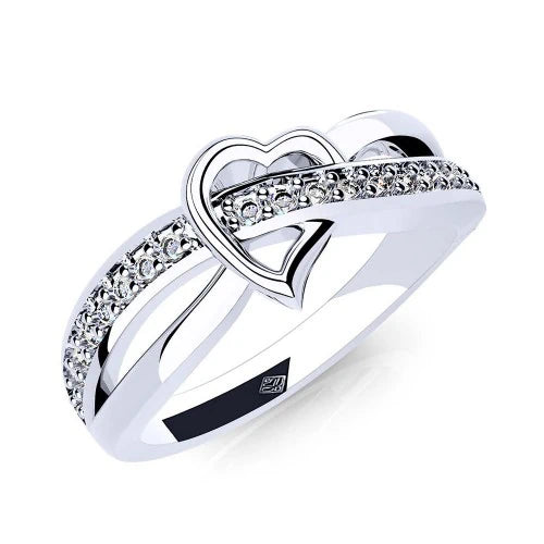 Wunderschöner verspielter Verlobungsring mit 20 Zirkoniasteinen und einem Herz in der Mitte der Ringschiene.